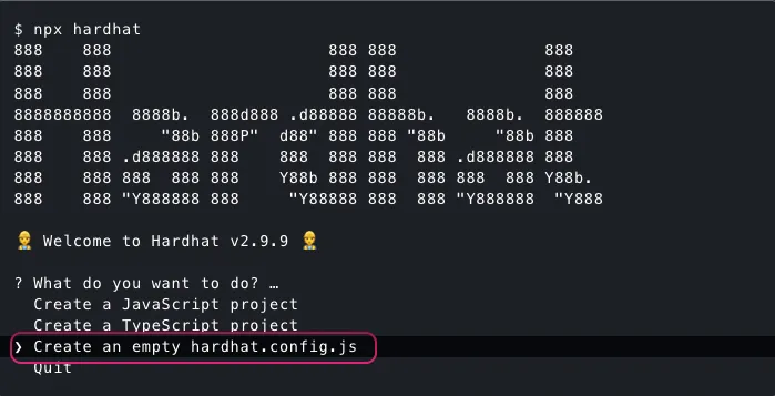 npx hardhatb) Select Create an empty hardhat.config.js
